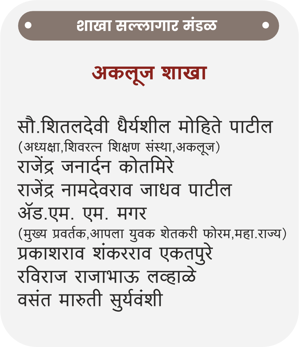 ADDRESS : R COMPLEX, GROUND FLOOR, SHOP. NO. 1,2, MAHAVIR PATH,GANDHI CHOUK, AKLUJ, DIST. SOLAPUR, PIN. 413 101